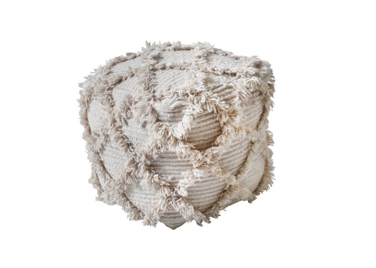 Kepino Hand Woven Pit Loom Natural Wool Pouffe