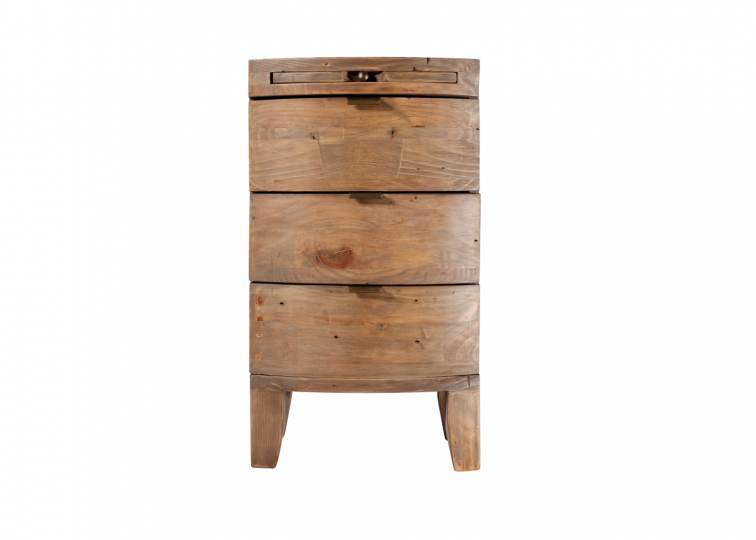As well as providing a spot for a bedside lamp, the reclaimed bedside chest also offers handy storage space with three drawers and a slide out shelf which creates some extra surface area.