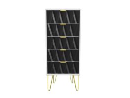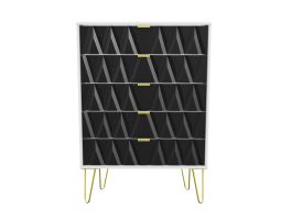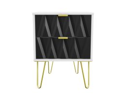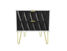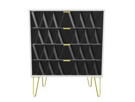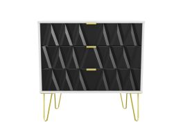 Inject the dark glamour and luxury of 1920s Art Deco into your bedroom with the Diamond Black Matt Bedroom collection. This stylishly simple and highly functional rage offers bold geometric patterns, vivid colouring and clean lines reminiscent of the legendary Bauhaus style. These striking drawers, chests and wardrobes rest tastefully stunning gold hairpin legs and feature opulent gold hardware for that added touch of charm.