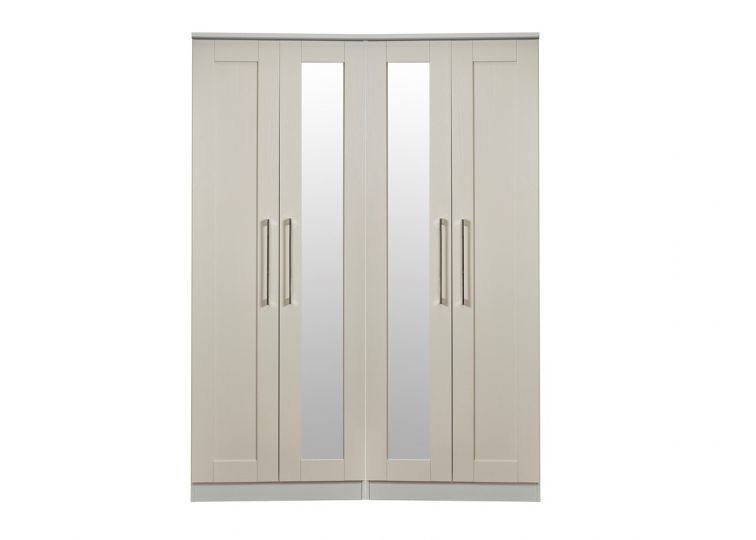 This double wardrobe is the peak of functionality and cosy design. The neutral colours work beautifully with panelled surfaces and slim, metal handles but that’s not where the design stops. You’ll also find linen-look interiors that adds to the homely setting.
