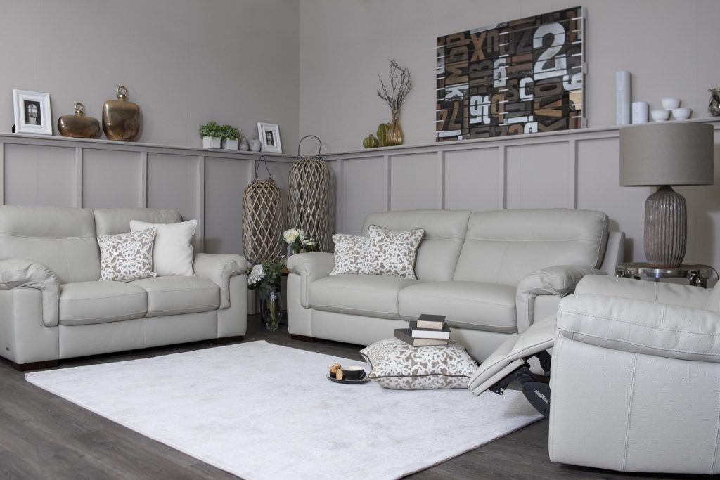 There’s just something about grey leather that looks impressively luxe and keeping the same colour palette throughout your living room makes for a truly serene interior.