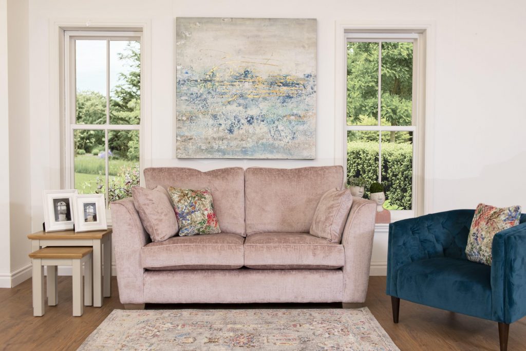 Pictured: Florence 2 Seater Sofa (now only £899), Rhianne Armchair, New Haven Nest of Tables