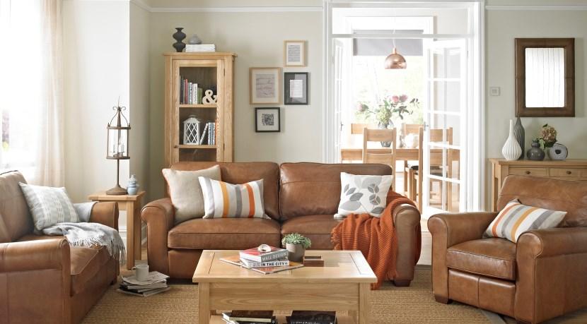 Textiles are an easy way to add a bold colour or pattern into the mix without it being too overwhelming. Plus, you can swap things around easily when you get tired of them. Warm colours, like the oranges in the image of the Halo Hudson 3 Seater Leather Sofa, instantly make a room feel cosier and more homely with very little effort or expense needed.