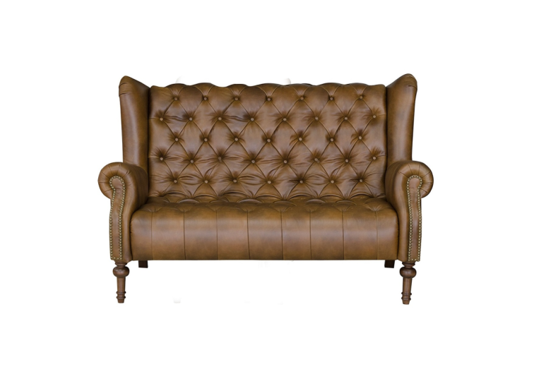The scroll arms and winged back design of the Alexander & James Theo Leather Highback Sofa oozes comfort and style. Deep buttons, shaped antique legs and a studded front complete the look of this fabulous sofa.