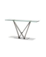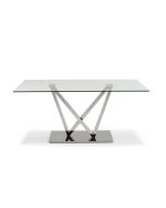 Made from polished stainless steel and glass, the table is designed to suit a contemporary living space.