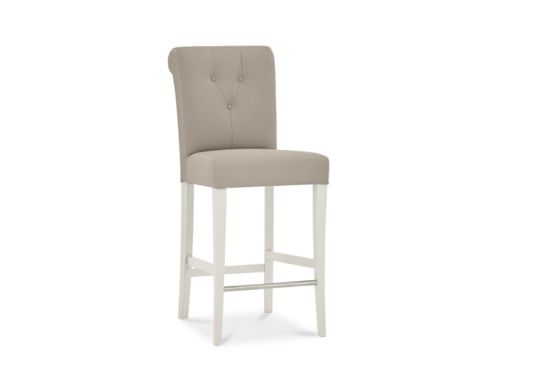 Have you ever seen a more classy and elegant bar stool? This wonderful and well-crafted stool comes upholstered in a soft-grey fabric, with a buttoned detail on the seat back to give it a contemporary twist.