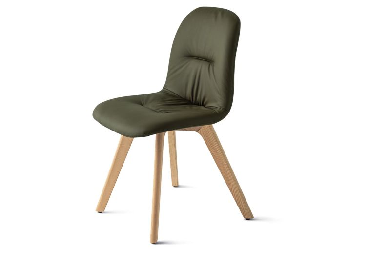 The Bontempi Casa Chantal is a contemporary dining chair with solid wooden legs and an upholstered, curved seat and distinct pintuck detail. The cover itself can come in a wide range of colours and materials, from smooth Italian leathers (and faux leather options) to soft fabrics in patterns and plains.