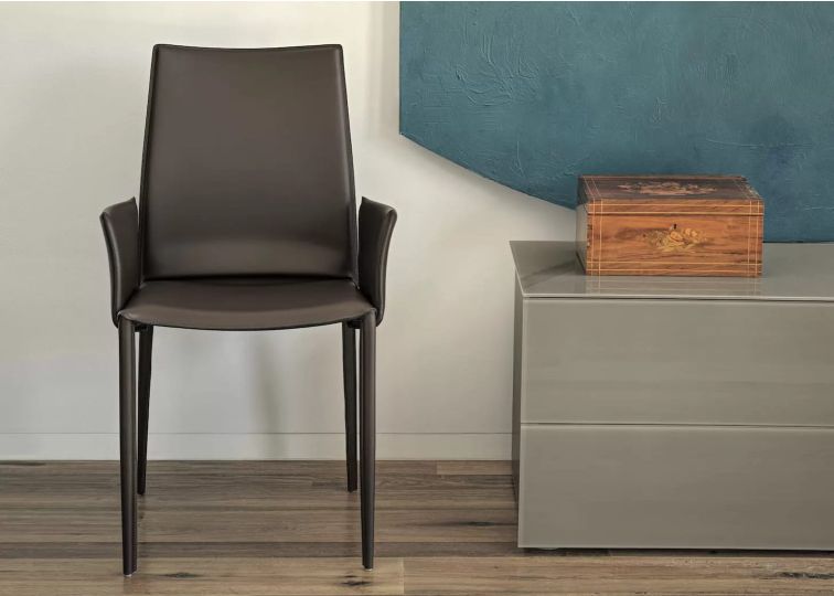 The Bontempi Casa Linda is a slim, statement dining chair with an elegant high back and separated arm design. It’s a unique look and one that will certainly add an extra dimension to your dining room. Customise the fully upholstered Bontempi Casa Linda in one of many leather options.