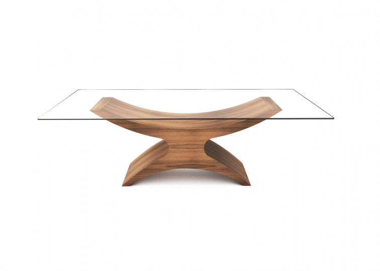 The table’s glass top and concave base allows a lot of light to pass through and around it so it takes up little visual space despite its large size.
