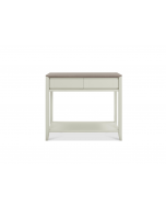 A cosy little lamp table with neutral colour tones, thanks to the soft-painted grey frame and washed oak table top.
