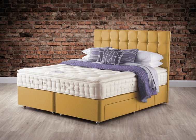 The Walbury Pillow Top Divan Bed has multiple storage options for the base, which comes upholstered with over 30 different fabric colours. The Walbury mattress itself uses rows of pocket reactive pocket springs to evenly distribute your weight and adjust to your body shape for pressure relieving properties. Amongst springs are layers of cushioned British wool and latex.