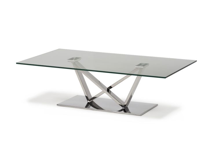 The Kesterport Westwind Coffee Table has a strong design made from polished stainless steel and toughened glass.