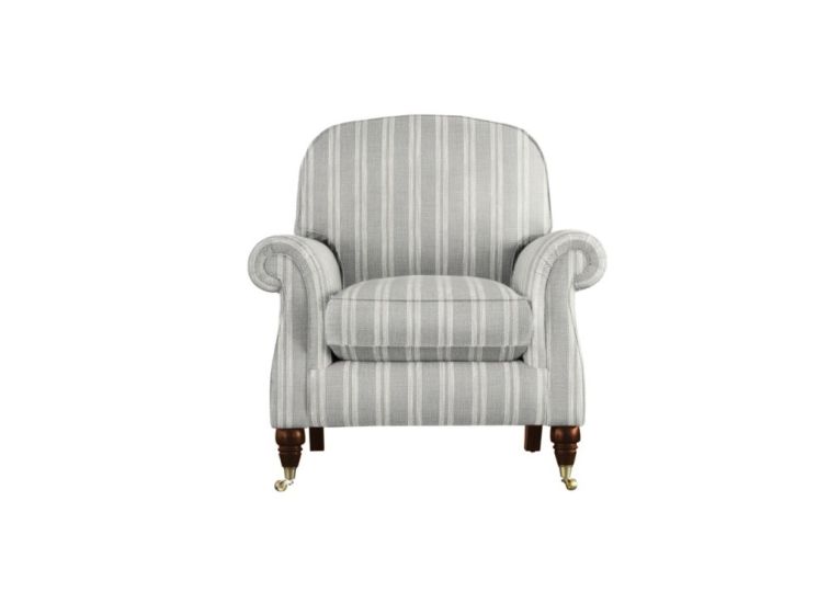 Shown In: Austen Stripe Dove, Legs in Mahogany, Leg Trim in Brass Castor