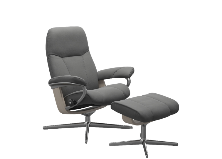 The Stressless Consul Cross Chair offers a streamlined and stylish appearance, with a visible seam detail to add that extra sophistication. This does NOT come with the footstool as pictured, but still features all of the impressive benefits a Stressless chair has to offer:
