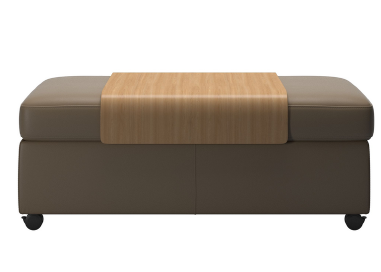 There's enough leg room for two thanks to the Double Ottoman by Stressless. With ample storage underneath and a removable wooden top, you can store those extra bits while placing snacks and refreshments down in an easy-to-grab place.