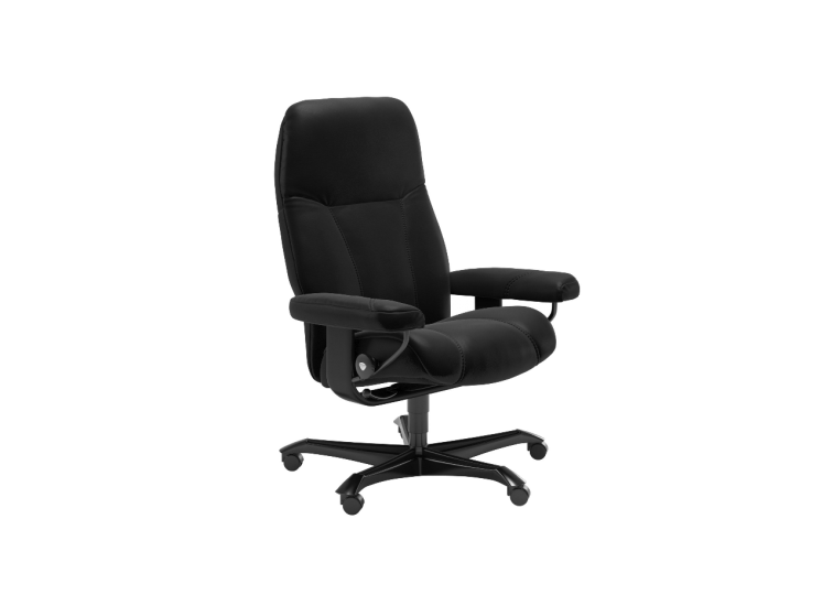 Classic and universal, the Stressless Consul Office Chair is designed to suit any décor or layout. It’s a minimalist style that looks great in a timeless black leather cover. Deep foam filled seat cushions are there so you’ll feel instantly relaxed as soon as you take a seat, ready for a day of work.