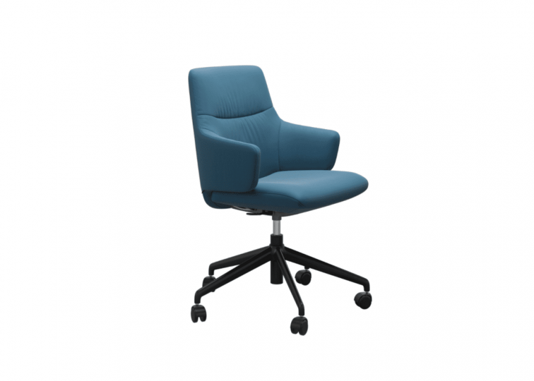 Shown In: Paloma Crystal Blue Leather with Chrome Legs.