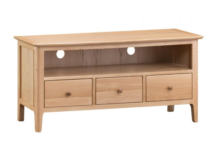 Complete your cosy living room set up with the Scandi large TV cabinet. There’s plenty of storage to be found, with three small drawers for DVD’s, remotes and games alongside a shelf for consoles and a cable management cut out to conceal wires.