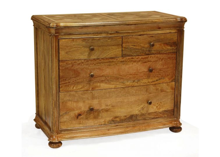 Offering a vast amount of storage space, the Vogue Bedroom 4 Drawer Chest is crafted from a high grade of mango wood that has been given a warm finish as well as decorative stone inlays.