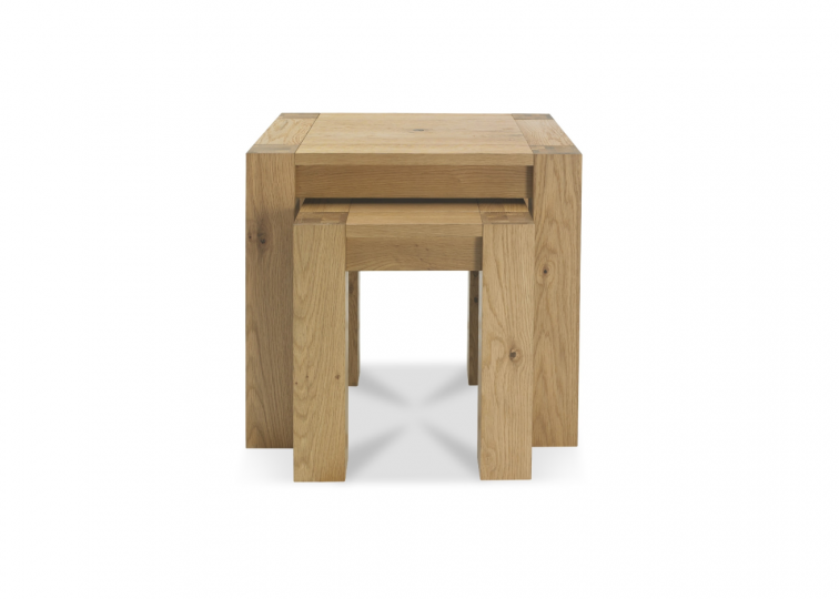 A perfect pair for your living room, this wooden nest of tables is a simple staple for any home. The sturdy craftsmanship of the American solid oak materials makes it a reliable place for displaying items or setting down cups (we still recommend coasters!)