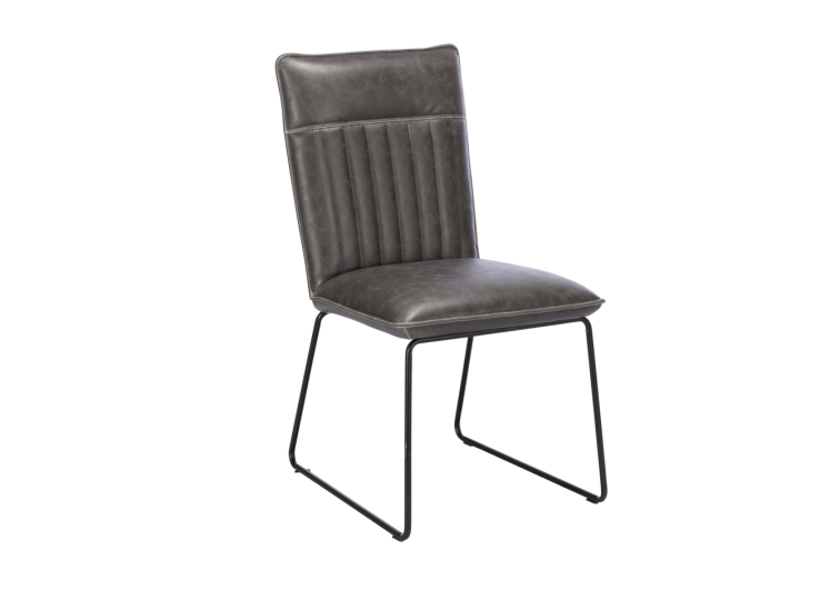 The Busker Cooper Dining Chair has a trendy, industrial inspired design with its slim-line black metal legs and faux grey leather seat cushion.