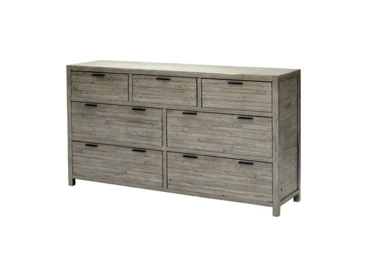 The Leo Bedroom 7 Drawer Chest has a simple design with minimal detailing that allows for the natural imperfections of the reclaimed wood to be the focus of attention. The long narrow planks vary in shade and tone, creating a subtle patchwork effect that gives the chest a rustic feel.