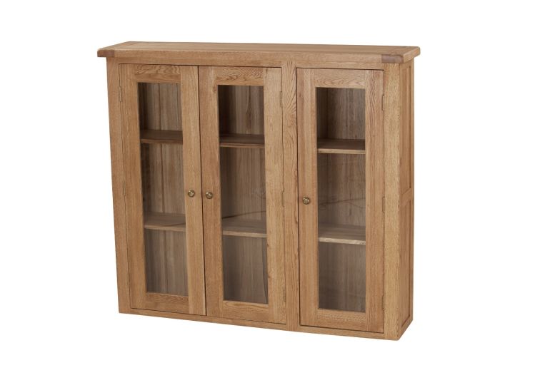 Store and display ornaments and dinnerware behind the glass doors, which are surrounded by an exquisite, reliable oak frame in a brushed oil finish.