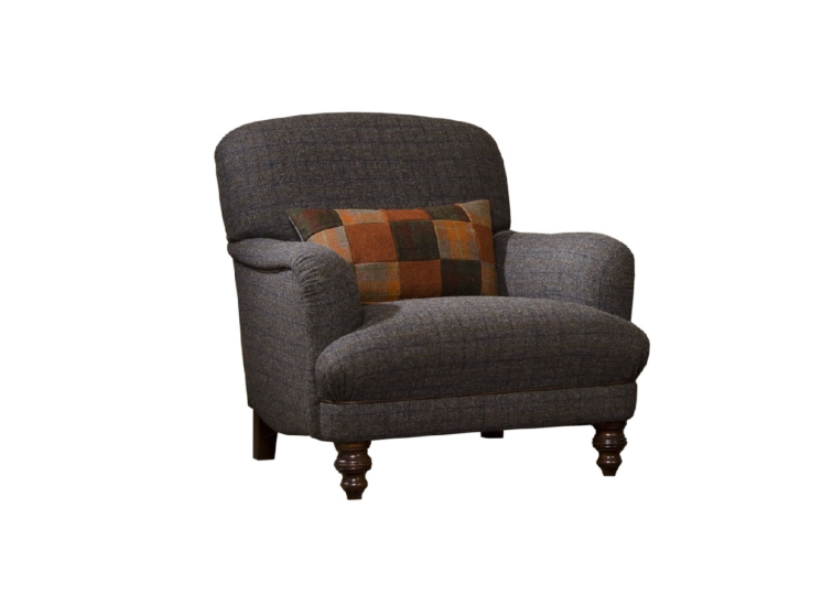 The Tetrad Harris Tweed Braemar Chair is a beautifully designed piece, with elegant curves and detailed legs.