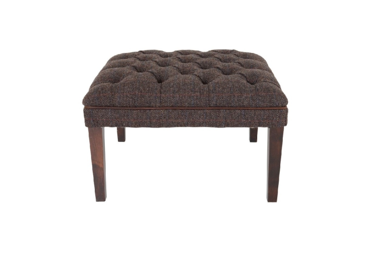 The Tetrad Harris Tweed Mackenzie Stool has the same luxurious deep button design and tall polished hardwood feet as the Mackenzie Chair.