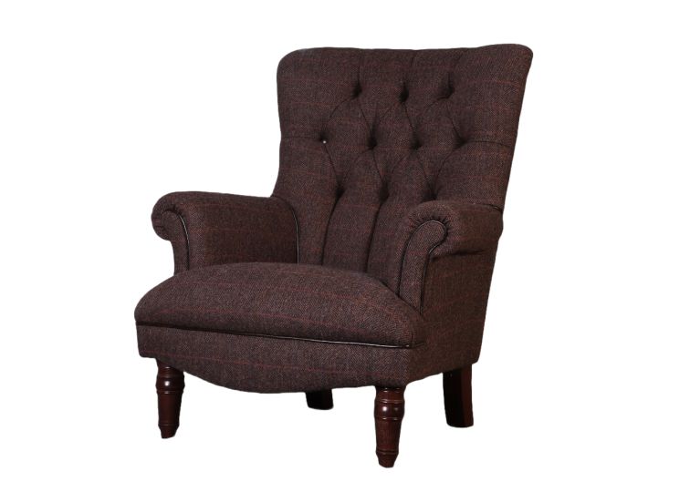 The Tetrad Harris Tweed Regent Chair has a truly traditional look, with its individually hand buttoned back and slim scroll arms with stud detailing.