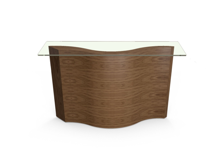 The Tom Schneider Serpico Console Table has a striking, contemporary design made from beautiful natural wood veneer and glass.